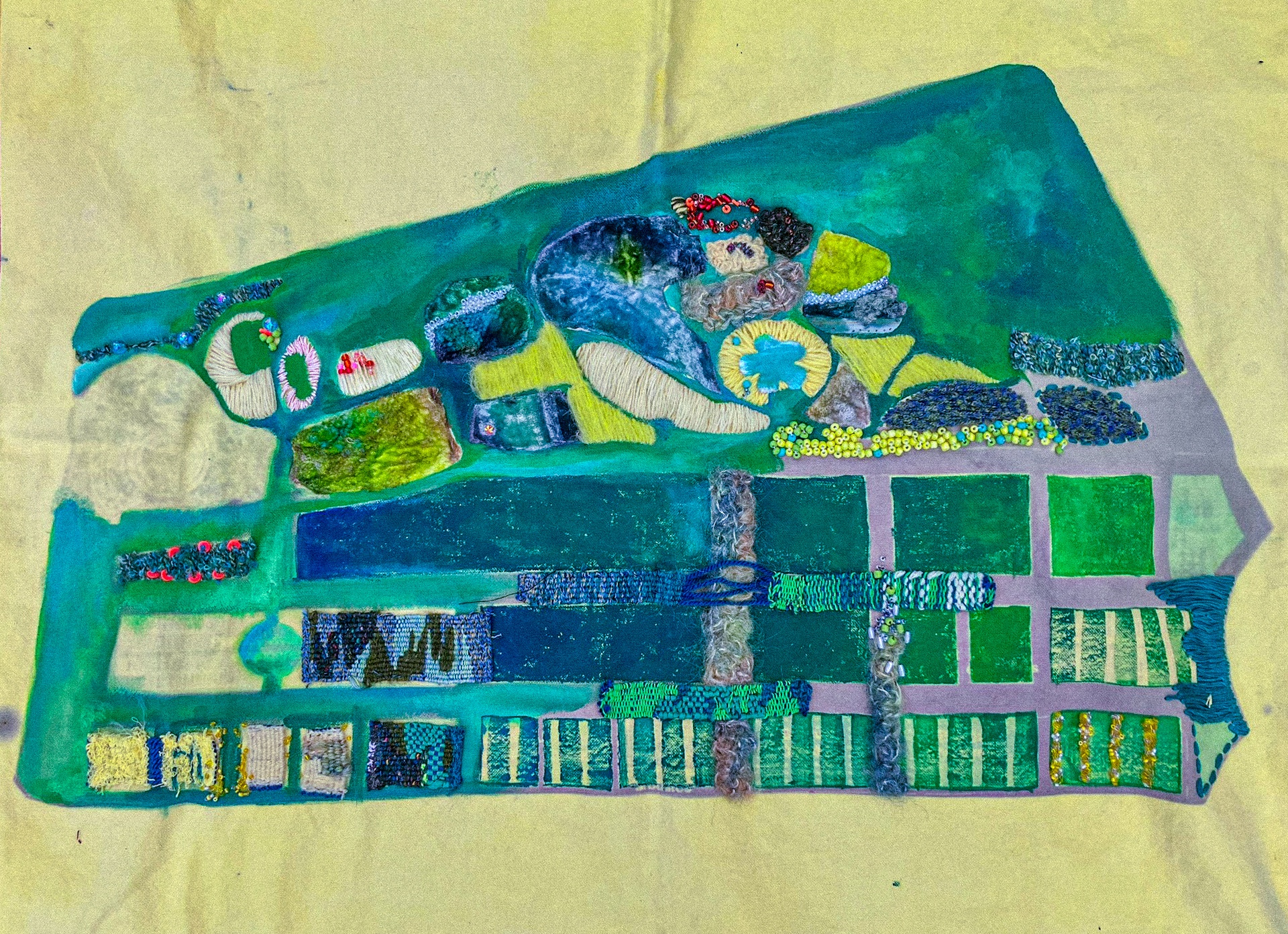 Students from the École nationale supérieure des Arts Décoratifs were invited to immerse themselves in the Paris Botanical Garden. After two guided tours and enriched by the knowledge gained through the research project Cabinet of Memory, they were invited to create a series of maps of the garden designed to evoke dreamlike journeys. These maps were crafted using techniques such as plant-based dyeing, indigo dyeing, embroidery, patchwork, and bead inlay.